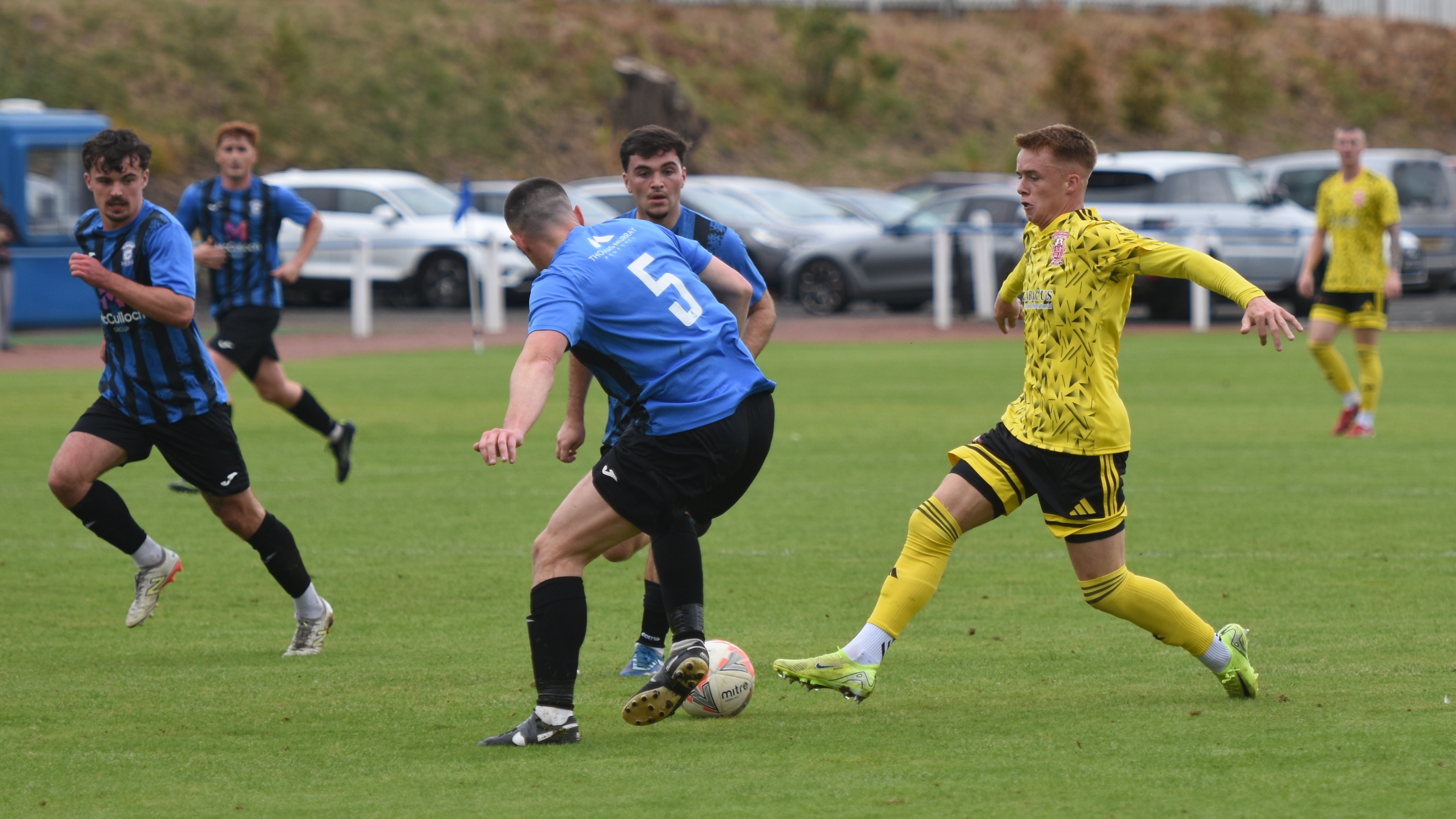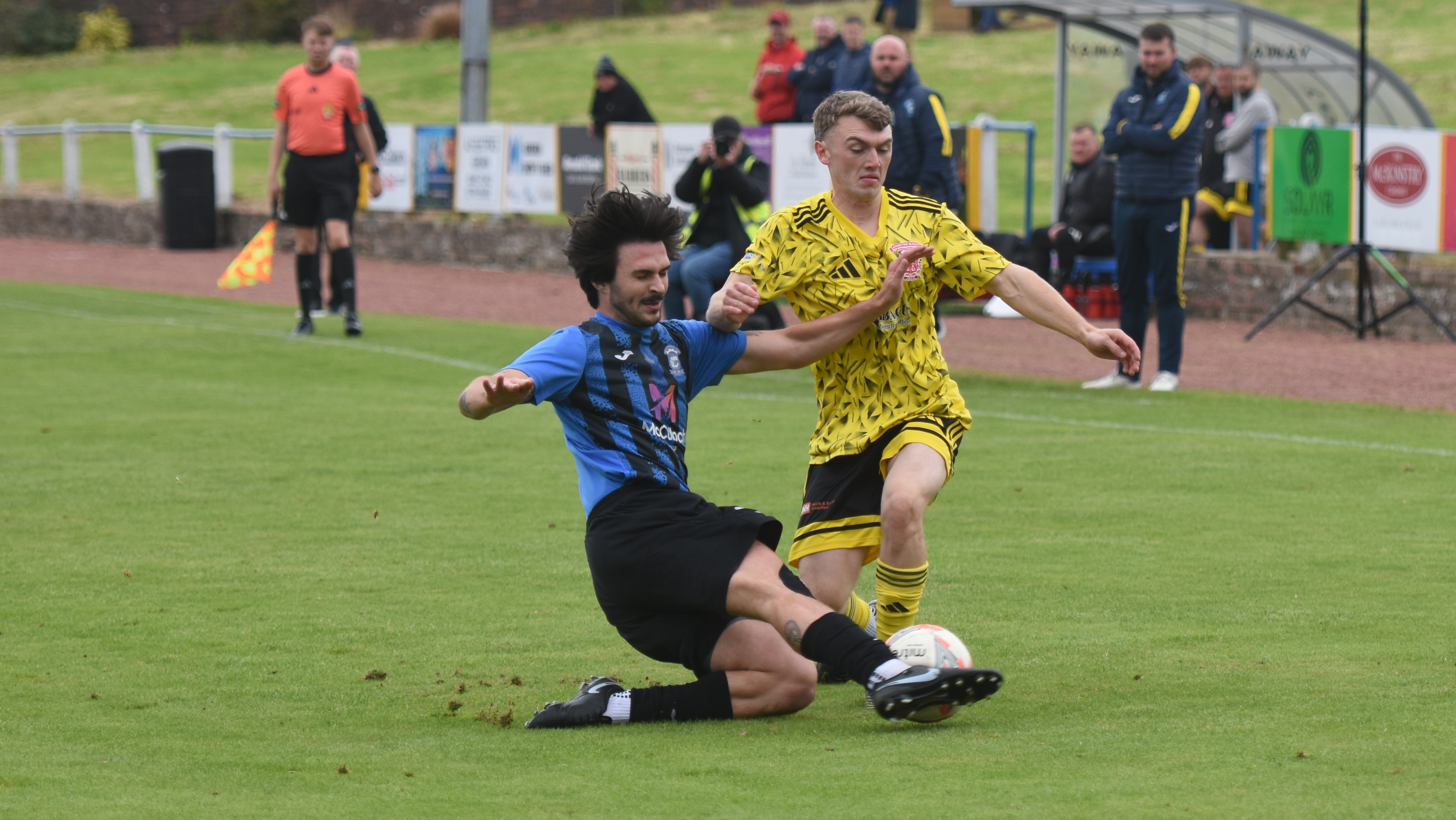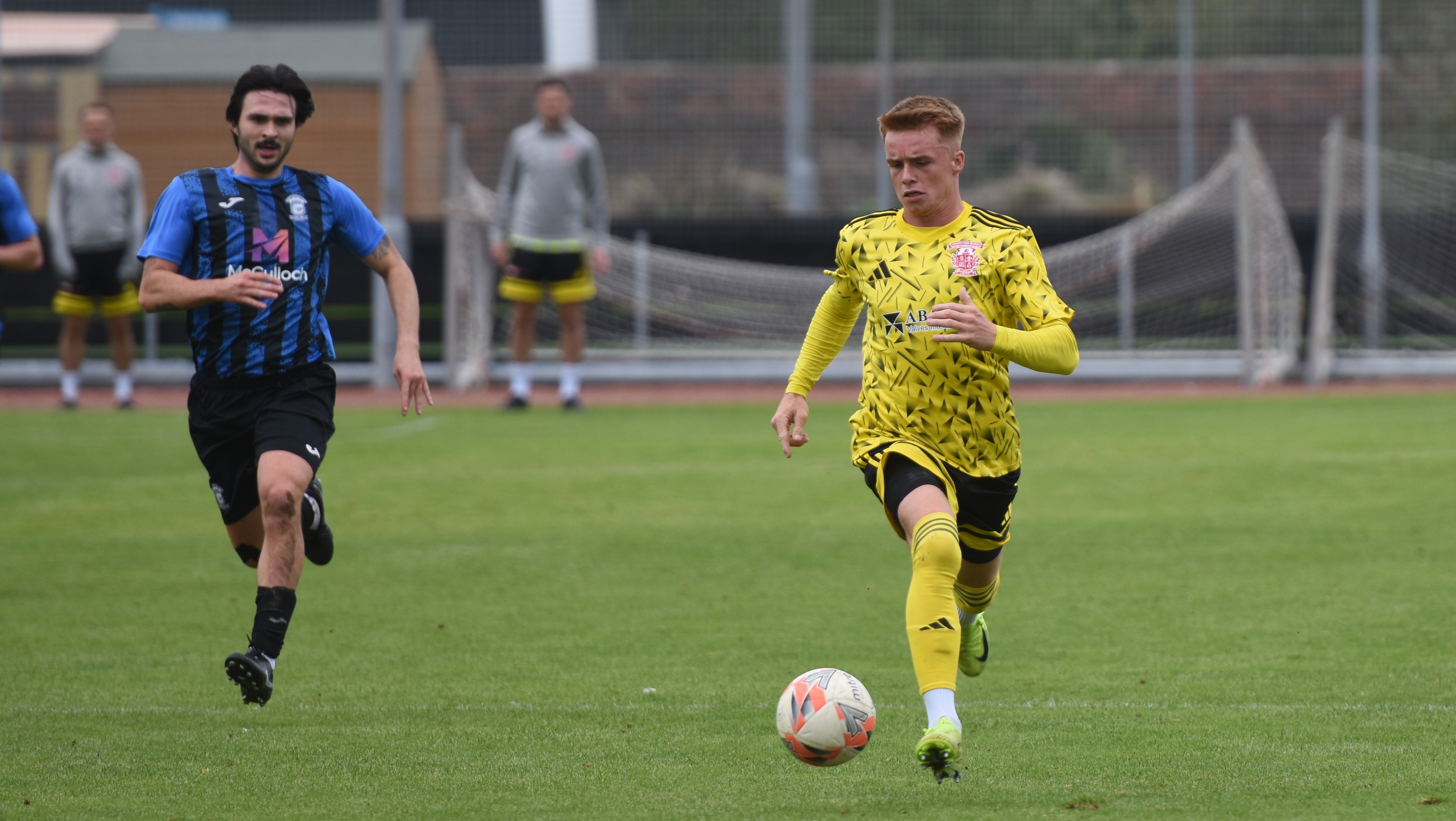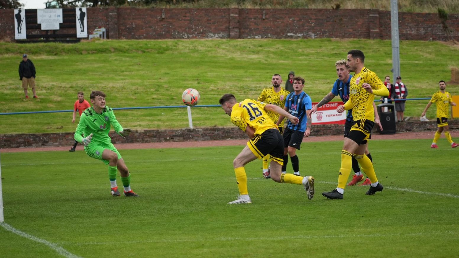 Five minutes before the break, Max Kerr collected a superb cross-field ball from Rossiter, played a one-two with Ian McShane then skipped between two defenders before unleashing a powerful strike from the edge of the box, which flew past Mullen into the net to put The Burgh ahead.