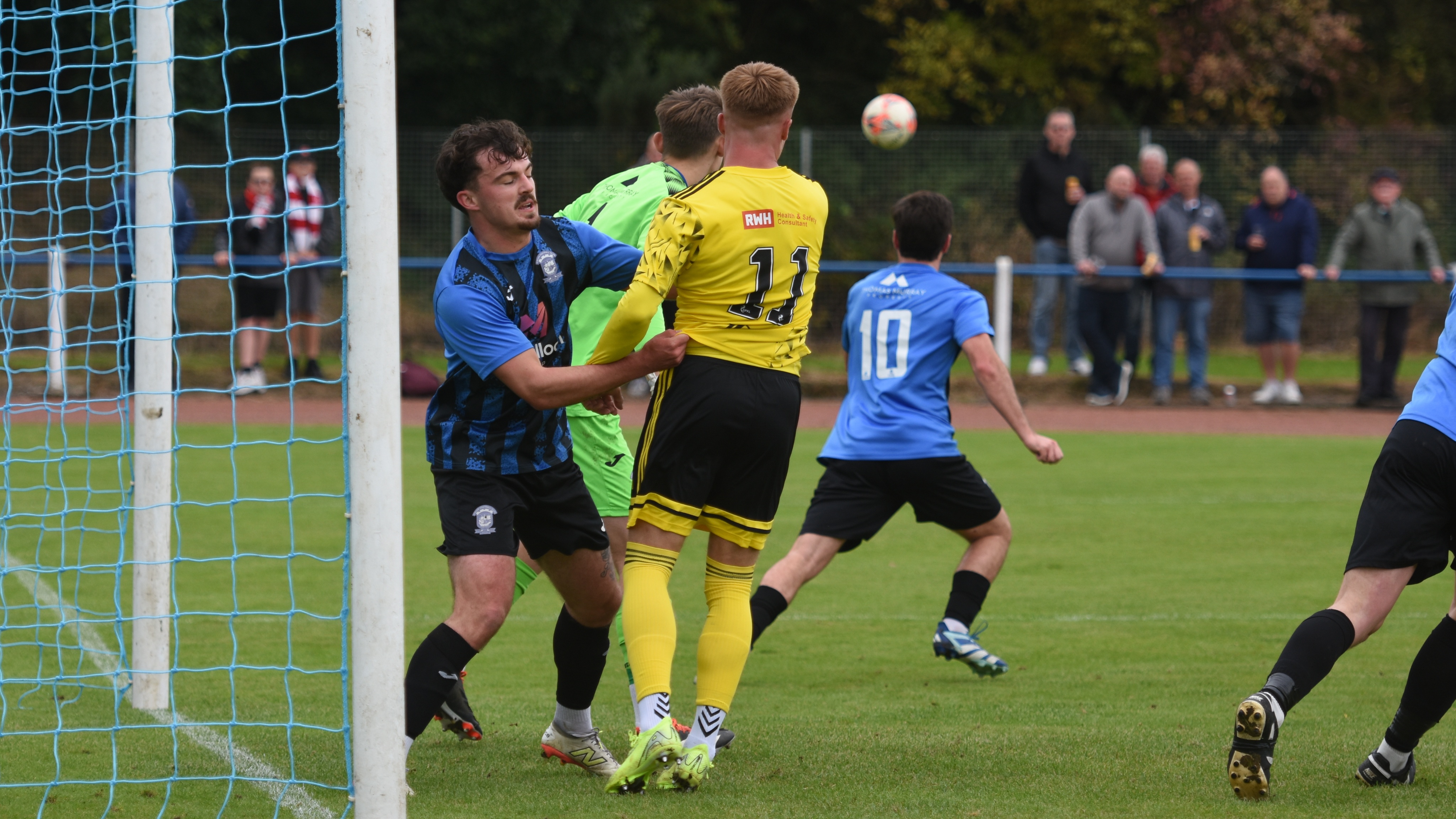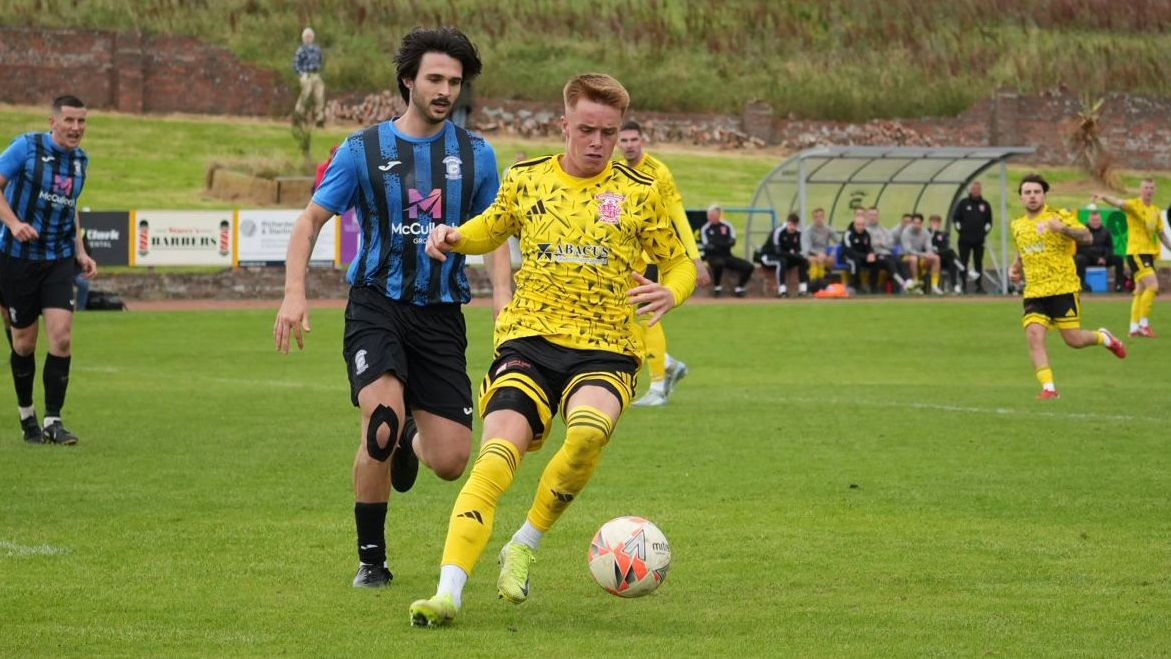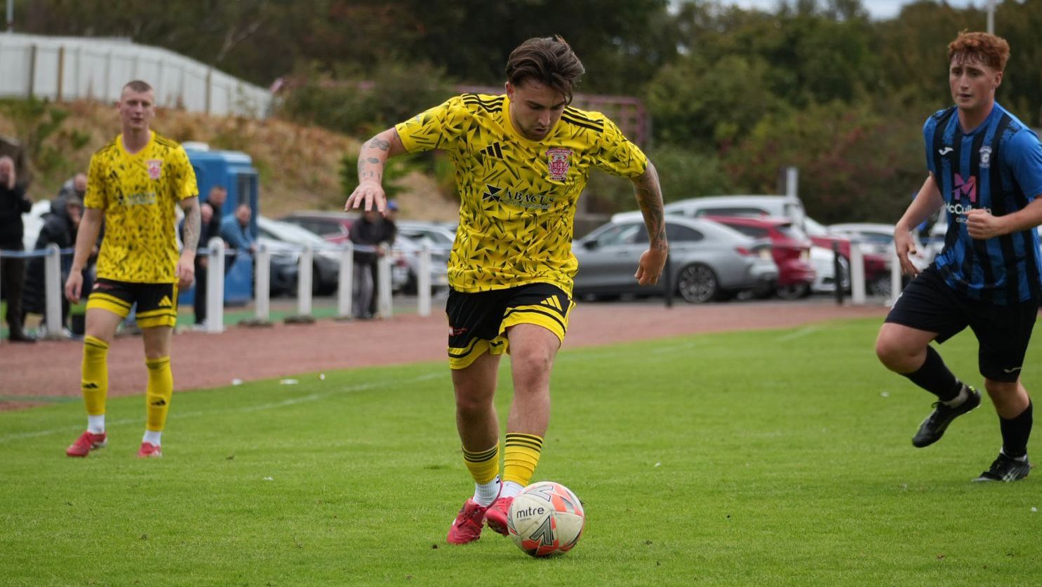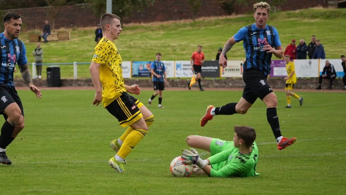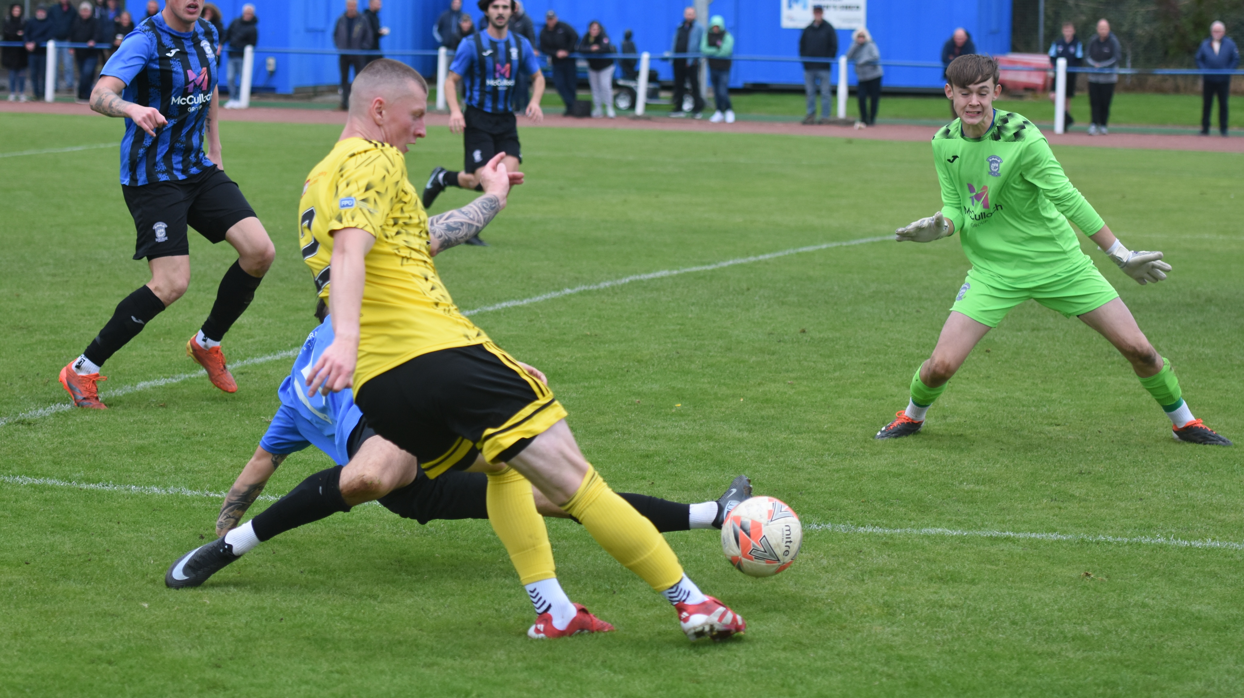 Five minutes before the break, Max Kerr collected a superb cross-field ball from Rossiter, played a one-two with Ian McShane then skipped between two defenders before unleashing a powerful strike from the edge of the box, which flew past Mullen into the net to put The Burgh ahead.