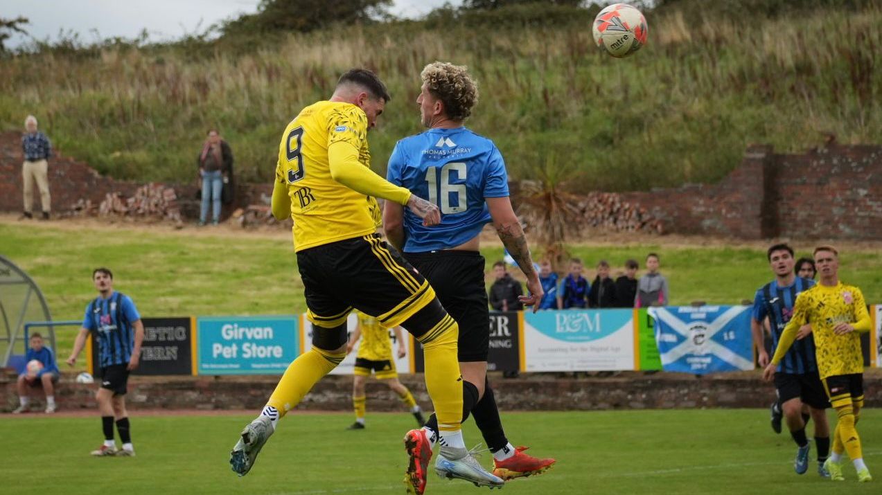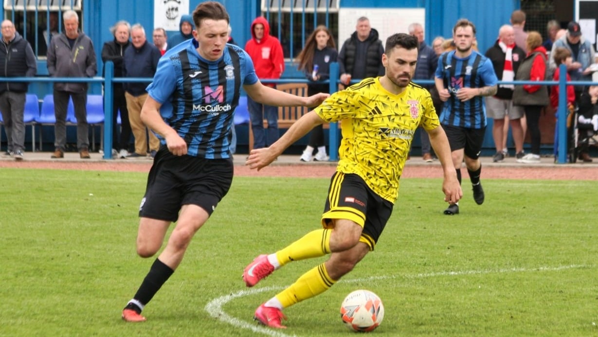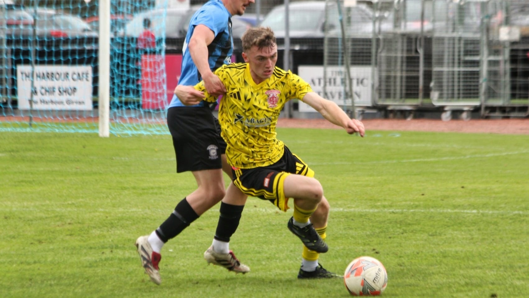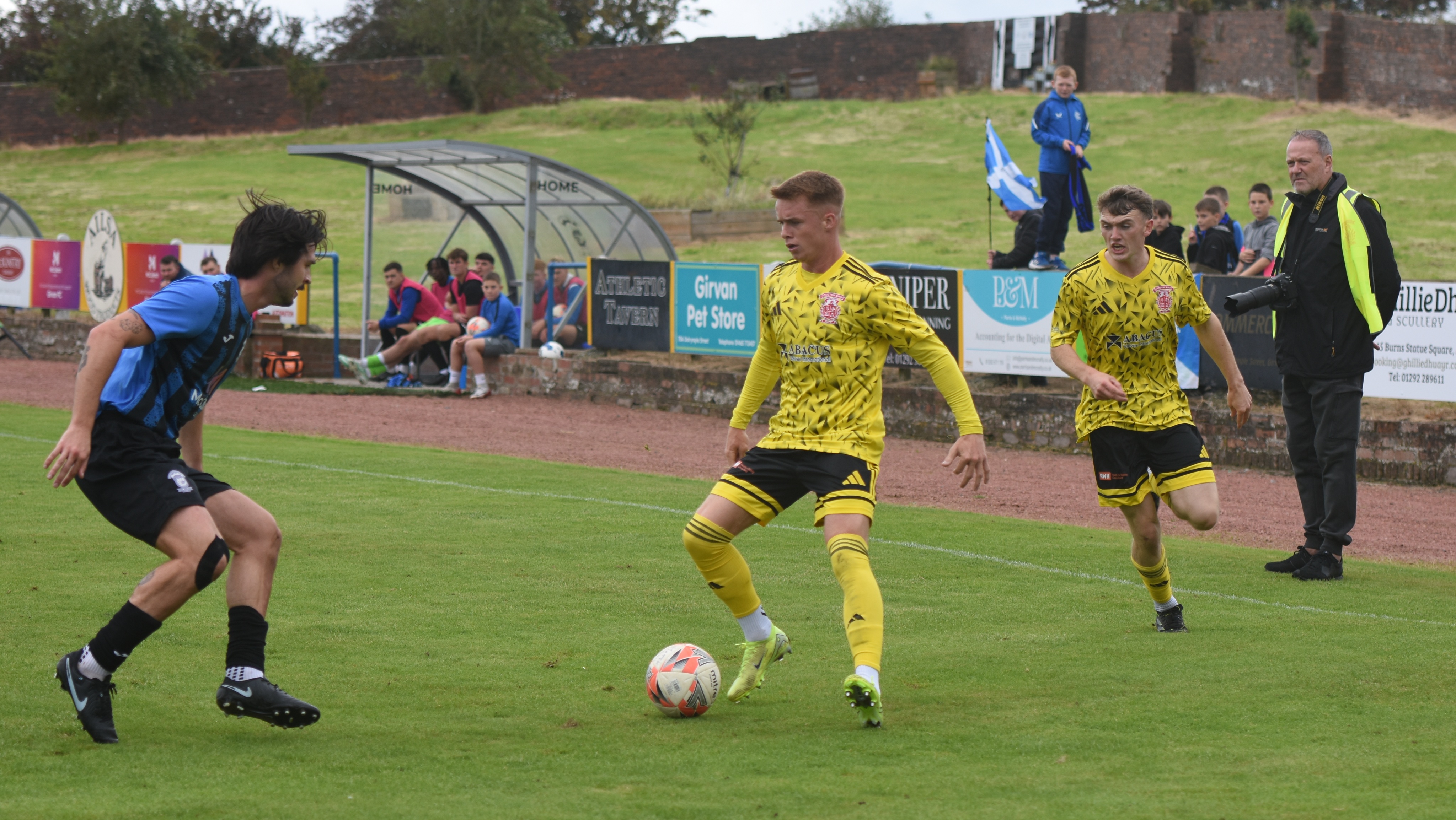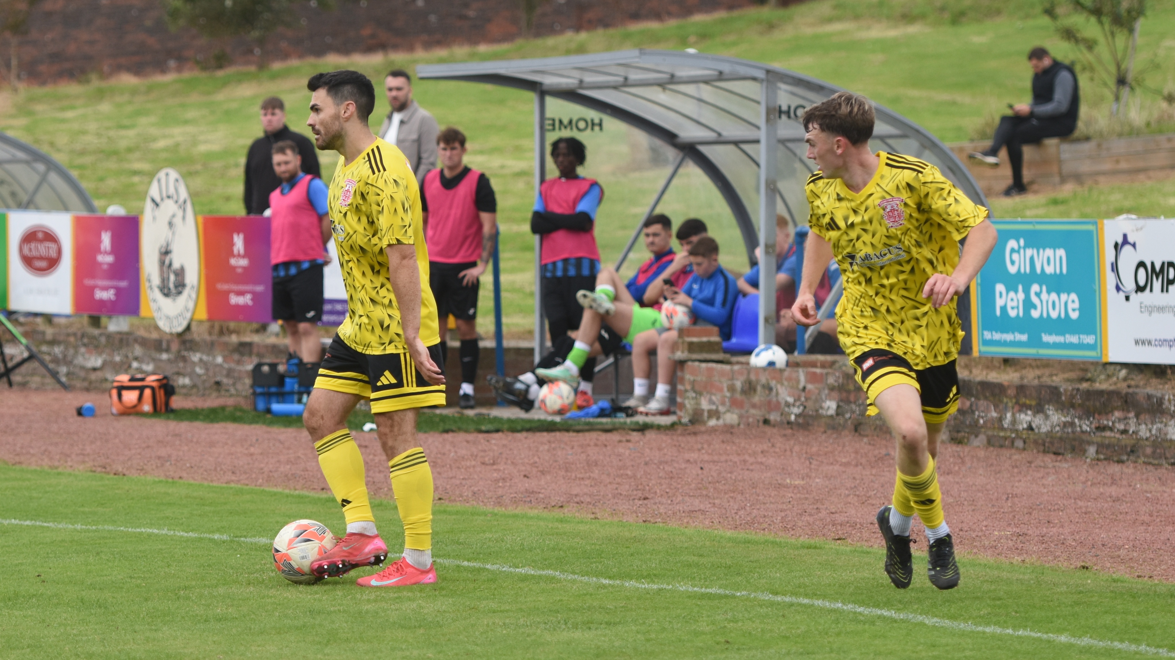 Following the early pressure, the hosts found their way into the match creating one or two chances for themselves without really threatening, whilst Mullen stung the palms of the Girvan keeper.